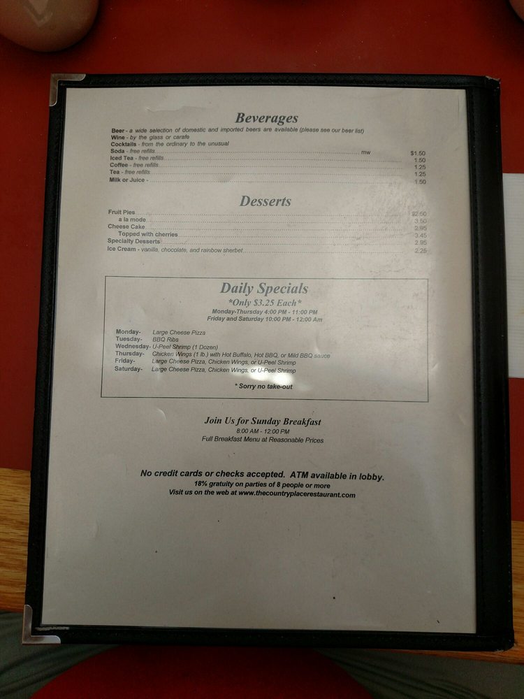 Country Place, a quaint American eatery in Perkasie, PA, offers a diverse menu with a range of options to satisfy various cravings. From appetizers like Combo Appetizer and Stuffed Mushroom Caps, to salads like Caesar Salad and Oriental Chicken Salad, the flavors are fresh and inviting. The main courses of Chicken Parmesan, Veal Neptune, and Baked Cheese Manicotti showcase the culinary skills of the chef. Customers rave about the affordable prices, friendly service, and cozy ambiance. With a full bar, TV, and outdoor seating, Country Place caters to a laid-back dining experience where good food and good company come together. The bar serves $1.75 shots/well drinks, making it a favorite among locals. Cash-only payment adds to the charm of this hidden gem in Upper Bucks County, drawing diners back time and time again.